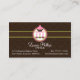 ©Socialitedesigner 2012. Den nyckfulla muffinen på ett stativ och insida för tre tårtapop ett snöre cirklar visitkortdesign. Bakgrunden har ett damastast mönster för choklad och för kakao. En perfekt visitkort för en bageriaffär eller händelsecateringaffär liksom efterrättbord. Personifiera denna bagerivisitkort med din information.