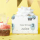 Den här visuella bilden av muffinsar och en blå ballong är en perfekt som passar in för vilken liten pojkes födelsedagspresent. Den accentueras med faux guld glitter stjärnor på vit bakgrund och anpassningsbar för födelsedagspojkens namn och ålder.