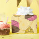 Mjukvårdsmönstrad presentförpackning med smakfulla muffinsar och muffins över kärlek-hjärtan