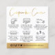Vitt och Guld Muffinss Care Card med moderna typsnitt och cuptårtvårdssymboler. De här handhållningskorten för bageriförvaring i faux-guld-folie innehåller de viktigaste förvaringsanvisningarna samt utrymme för logotyp och affärsinformation på baksidan. Perfekten läggs till i bageriet och förpackningsdesignen.