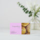 Muffinusinesskort som är passande för bageri eller cupcakery. Designen presenterar ett foto av nytt bakad vaniljmuffins mot en rosa bakgrund. All text är anpassadet. du kan ändra bakgrundsfärg i cutomizemenyn.