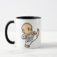 Mug avec l'image d'un bébé vêtu d'un kimono de karaté avec ceinture blanche, tenue traditionnelle d'art martiaux, très concentré il exécute un mouvement de kata.