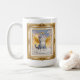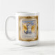 This mug showcases an angel cat with gold wings and halo, illustrated as a framed artwork with soft clouds and warm light. A comforting and elegant mug for cat lovers.