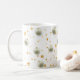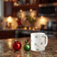 Beautiful white mug with stars and ornaments for hot coffee, tea, milk