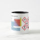 Mug pour scientifique représantant un tableau périodique des éléments et des pictogrammes de sécurité.