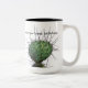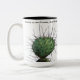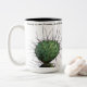 A tea or coffee cup or mug with an image of a prickly cactus. Above the image is a phrase stating, 'Prickly on the Outside, Still Thriving'.