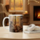 Wrap your hands around this classic ceramic mug featuring a tranquil scene: a cozy armchair, a crackling fireplace, and a stunning view of the autumn forest. Perfect for your favorite coffee or tea.Microwave & Dishwasher Safe.