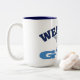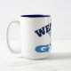 Mugg, vit med blå insida och logotypen Website Guy på utsidan