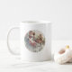 "En stilren vit keramisk mugg med en vacker renässansinspirerad illustration av keruber i en frodig, blomsterrik miljö. Den klassiska konsten kontrasteras lekfullt med den moderna, djärva texten 'LUGNA NED BARA' böjd längst ner. En perfekt blandning av vintageestetik och samtida vibbar, som gör varje kaffe- eller tebroms till ett ögonblick av konstnärlig avkoppling."