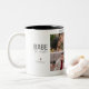 Det här är en anpassningsbar Alla hjärtans dagtemade keramiska mugg designad med en svart fälg och handtag. Mugg har ett kollage med romantiska par foton och frasen "Lycklig Valentine" är elegant skriven över toppen. Perfekt som personlig för att fira kärlek och skapa omhuldade minnen.