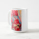 Kopp skildrar pulserande röda blommor som ställs in mot en abstrakt med ljus färgad. Blommorna, med sina feta röda petaler, framträder på ett framträdande sätt och tillför en känsla av värme och intensitet till teckningen. Bakgrunden är en mjuk blandning av ljusnyanser, kanske beige, grädde eller pastelltoner, som skapar en lugnande och sansande atmosfär. Bakgrundens abstrakt står i kontrast till de enskilda blommorna och skapar dem målningens brännpunkt