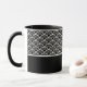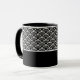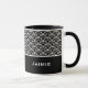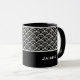Keramiskt kaffe mugg visas med svartvit konst. Anpassa det här objektet och ändra exemplet namn till ditt.