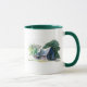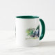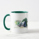Rustik scene av ladugård bland träden visas på två sidor av muggen. Tryck av originalakvarell av John A. Muir.
