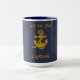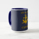 Besättningsmedlemmen mugg. Centrera illustration av ankare och rep i färg i golden. Anpassa bildtexten överst med Fraktens namn och grund med besättningsgrad/titel.