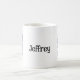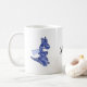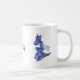 Blå drakdocka på varje sida av muggen. Drakens ansikte är vänt mot mitten där namnet är personligt. Draken är skapad av garn i flera nyanser av blått och vitt. Dockan har vita vingar.