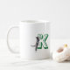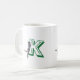 Katt som sträcker sig upp från botten till bokstäverna i namnet. Baksidan visar stor bokstav på denna sida, med vit och brun katt som står på bakbenen vid vänster kant. Texten är grön och kan anpassas med din bokstav och namn.