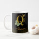 Luxurious guld brev Q adorated with butterflies and botanical accents, designad för en feminin och elegant mugg. Perfekt för kaffe, te eller presenting, den här högkvalitativa konsten innehåller ett anpassade namn för chic och personlig beröring.