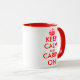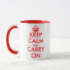 Mugg för anpassadebehållalugn med den röda kronan och text. Håll lugn och bär på.