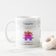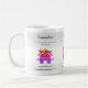 HAMbyWhiteGlove alias HAMbWG designad kaffe mugg med ett sfärtema. Färg och teckensnittet ändras med alternativet "anpassa". Vit med regnbåge.