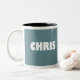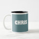 mugg för Blått-grå färg Chris namn. Namnge syns baksida och beklär.