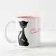 Denna mugg har verklig cattitude, med en svart kattsilhouette som har en fisk som, ben i den är buken, och en rosa polka pricker förser med krage på. Gör en gullig gåva för någon kattälskare.
