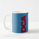 Perfekten för flygentusiasten eller frekventerar handelsresande, särdrag för denna mugg det eleganta officiella flygplatsdiagrammet av flygplatsen för den Ronald Reagan Washington medborgareflygplatsen, tillsammans med som den förtrogen väntre-brev flygplatsen kodifierar och flygplats namn och koordinater.