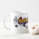 Mugg för fast guld 14k med vår logotyp-, slogan- och webbenadress som slås in runt om den.