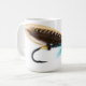 Den härliga bilden av en fluga för fiske för blåttberlocklax skrivev ut på en vanlig vitmugg