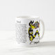 Förbindelsefamiljvapensköld däribland historien och menande av förbindelsenamn på en keramisk mugg. För mer information eller med din kommentare-post oss på heraldry505@gmail.com
