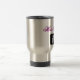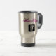 Rostfritt stålkaffemugg med svartvit sax och grafisk hårkam. Eleganten skrivar handstil i shock rosa, och svarten läser "hårstylisten". Sagolik gåva för en frisör, en stylist eller en barberare