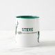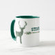 Jägare kaffemuggen med diagram av två görar grön kamouflerade hjortsilhouettes, med en färgrik pil, i mittet. Personifiera den gröna texten för dig eller som en underbar gåvaidé för din favorit- jägare.
