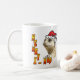 Denna är en mycket trevlig mugg för julmeerkatkaffe. Den har en julhatt med färgrik bokstäver med snö på den.