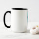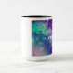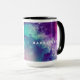Vitkaffemugg med en svart kant och handtag. Tillfoga någon lycka till din dag med ljusa galaxfärger, och a bet lite av kaffe!
