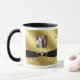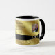 En Digitalbcon avbildar designen som presenterar ett svart satängband, och det guld- färgtemat med en variation av anpassningsbar avbildar, formar, mönster, stilar och typsnitt i denna mugg för fotoet för en-av-en-sorten "guldbröllopårsdagen". Denna elegant och attraktiva mugg kommer färdigt med anpassadebilder och textbokstäver att passa ditt egna speciella design och tillfälle för att göra detta den bäst souvenir för familj och vänner av din händelse eller, som en gåva till den speciella årsdagen kopplar ihop.