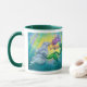 Rolig polar björnsjöjungfrukaffe koppar. En gullig fantasisjöjungfru stjäler en kyss från en mycket förvånad polar björn. Muggen bildar sjöjungfru för fantasikonstmålning "den polara kyssen för björn" vid Sue Halstenberg.