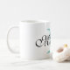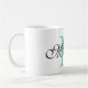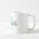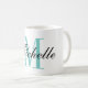 Planlägg din egna mugg för personlignamnmonogramen. Gullig monogrammed kaffemuggdesign. Gullig typografifödelsedag eller för manar idé för bröllopfavörgåva, kvinnor, ungar, vänner och familj. Den stilfulla eleganten skrivar typografi. Beställnings- färg för initialt brev för namn. ie-turkosblått och vit. Tillgängliga unika coffeemugs också, som stora oversized koppar och stora att gå travel mug tillfogar efternamn, efternamnet eller förnamn.