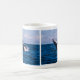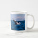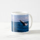 Kaffemuggen, som presenterar ett puckelryggval i en bryta igenom visning i, bevattnar av surfarear paradiset, Australien. Migrate tusentals puckelryggar för varje år North från Antarktis längs den australiensiska ostkusten till grogrunder av QLD.