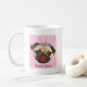 Detta lismar mops förhöjer henne unik skönhet med en full glamourmakeup, och tiaraen som krönar henne, rynkade skönhet som endast en mopsälskare kan uppskatta. Hon bevisar att någon kan vara en skönhetdrottning. Den är all om inställning. Detta lismar mopsdesignlooks som är underbara på denna keramiska kaffemugg. Det gör en underbar gåva för mopsälskare i ditt liv. En original- mopssäteridesign som göras i USA.