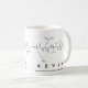 Kevin stavade ut i amino syror som K E V mig N (för ValineIsoleucine för Lysine Glutamic syrlig Asparagine) på en mugg för forskare i dig.