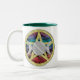 Den trefaldiga gudinnan - mor, jungfru och gammal käring och pentagramen. Alla med en bärnsten och ett guld virvlade runt solnedgångbakgrund