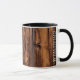 Mugg för ringer för Wood korn för guldfältgammala västern combo, svart handtag och insida, med fotografi vid M.E. Kibler. Guldfältet är en spökstad i Arizona est. i 1893 för det gammala kolossala guldet bryta. Denna mugg skrivs ut med en fotografera av härligt gammalt trä, med splittrar, och naglar, från det historiskt strukturerar på plats.