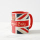 Vår mugg för den kungliga babyen för HRH jubileums- är en kall gåvaidé för kungliga babyiakttagare! Designen presenterar den iconic UK-flagga, den fackliga jacken som gås med med kungligt kronamotiv och text i vit. Tillgängligt i en variation av muggen utformar inklusive travel mug, collectible steins och frostad gåvamuggar. Tillgängliga volymrabatter!