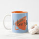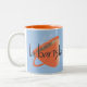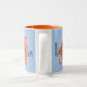 En roligt och en färgrik kaffemugg med den orange kaffekoppen som illustreras på blåttbakgrund med ordlaen Barista i svart handlettering.