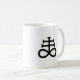 Skrivev den keramiska muggen ut för vit med alkemisymbolet för svavel.