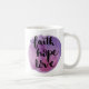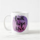 Denna mugg har "trohoppkärlek" beautifully som är skriftlig på båda sidor! Vattenfärgbakgrund är purpurfärgad.