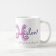 Namn för hand plockadebrevH och menande mugg. Nätt hjärta- och blommahuvudstadH klottrade den typografiska designen som presenterar hjärtor och blommor, och ordHelen A det glänsande ljust, ljust, klipskt och genialt i rosor och lilor. Unik konst och design för © av Sarah Trett. www.sarahtrett.com för www.mylittleeden.com på zazzle