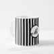 Vit monogramen för muggen för 11 uns klassikervit den beställnings- görade randig den svartvita randen