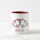 Den visar två interlinked hjärtor, en i rött och en i silver. Ändra monogramen till deras initialer.