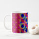 En färgrik kaffemugg, som ska fröjd någon vaddera entusiast, med en design från ett patchworkkåta-täcke av Judy Adamson.
