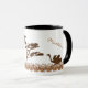 Denna personlig mugg presenterar två bruna ostrichsilhouettes för mörk som vänder mot en silhouette av ett Acaciaträd i centrera av muggen. Utformar grässlättar remsan av bruntet, och solbrännagrässtrån gränsar grunden av muggen. Ovanför varje djur finns det ett mallområde för att dig ska tillfoga ditt namn eller annan beställnings- text på antingen sida av muggen.